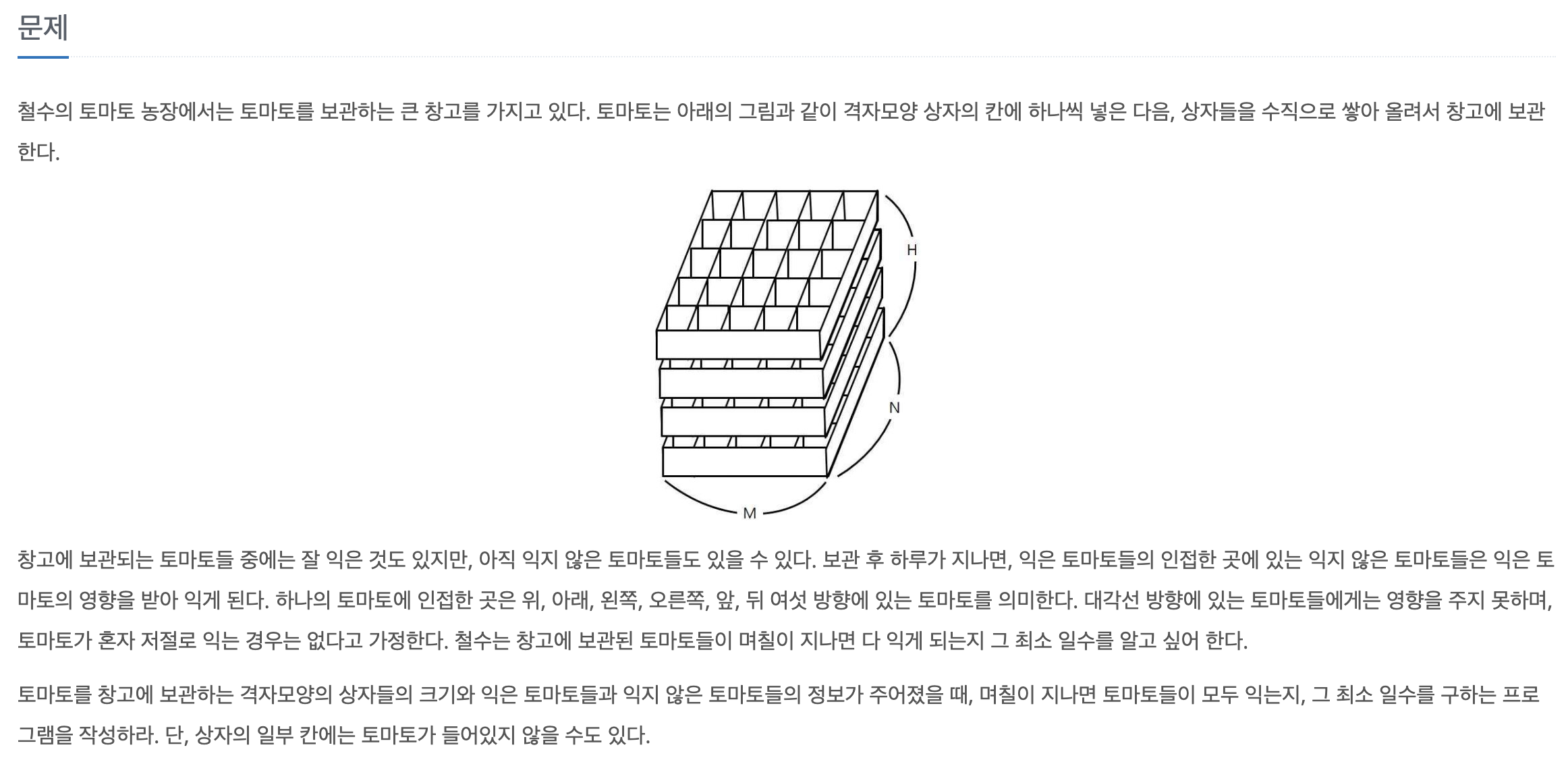 1. 토마토의 정보를 담을 배열 하나, 걸리는 시간을 담을 배열 하나해서 총 두개의 3차원 배열을 만들어준다.